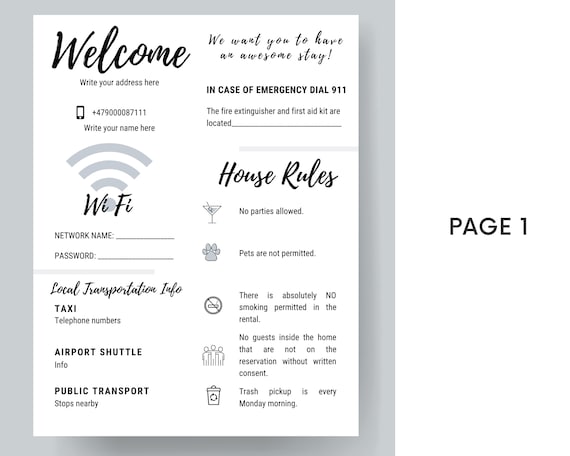 Airbnb 2 Pages Quick Welcome Guide Fillable And Editable Etsy Canada